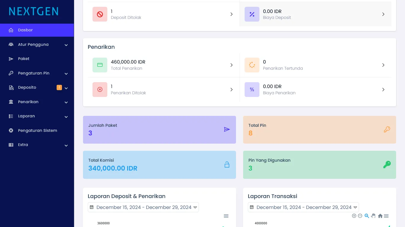 Melalui pengaturan deposit, admin dapat melakukan konfirmasi dan pemeriksaan transaksi deposit yang dilakukan oleh member. Admin dapat menolak deposit tertentu yang tidak sesuai atau tidak masuk ke rekening admin. Admin dapat menyetujui deposit sehingga menambah saldo member.